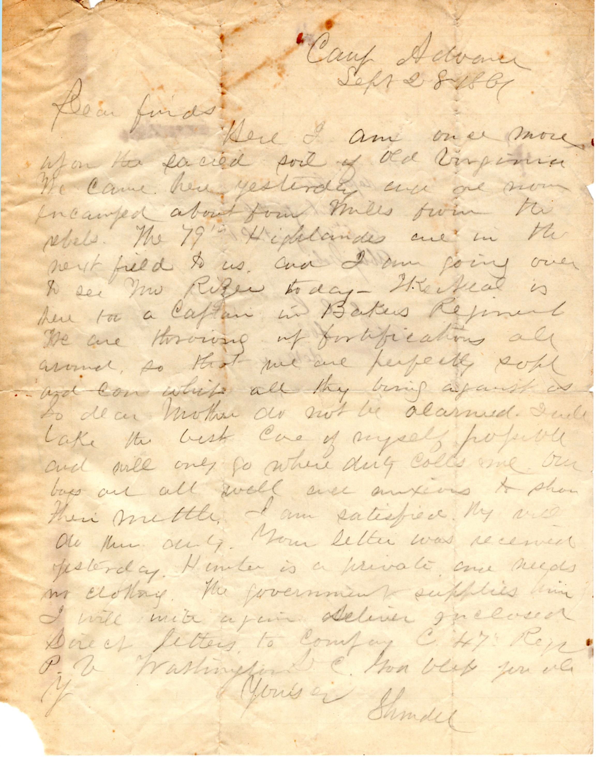 1861-09-28 J.P. Shindel Gobin from Camp Advance
