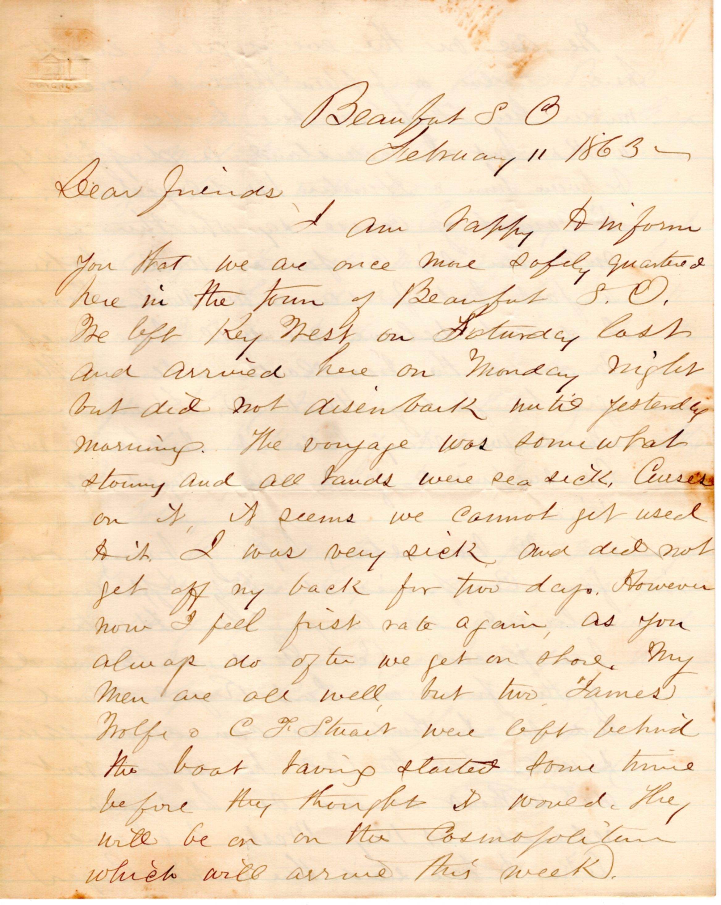 1863-02-11 J.P. Shindel Gobin from Key West, FL