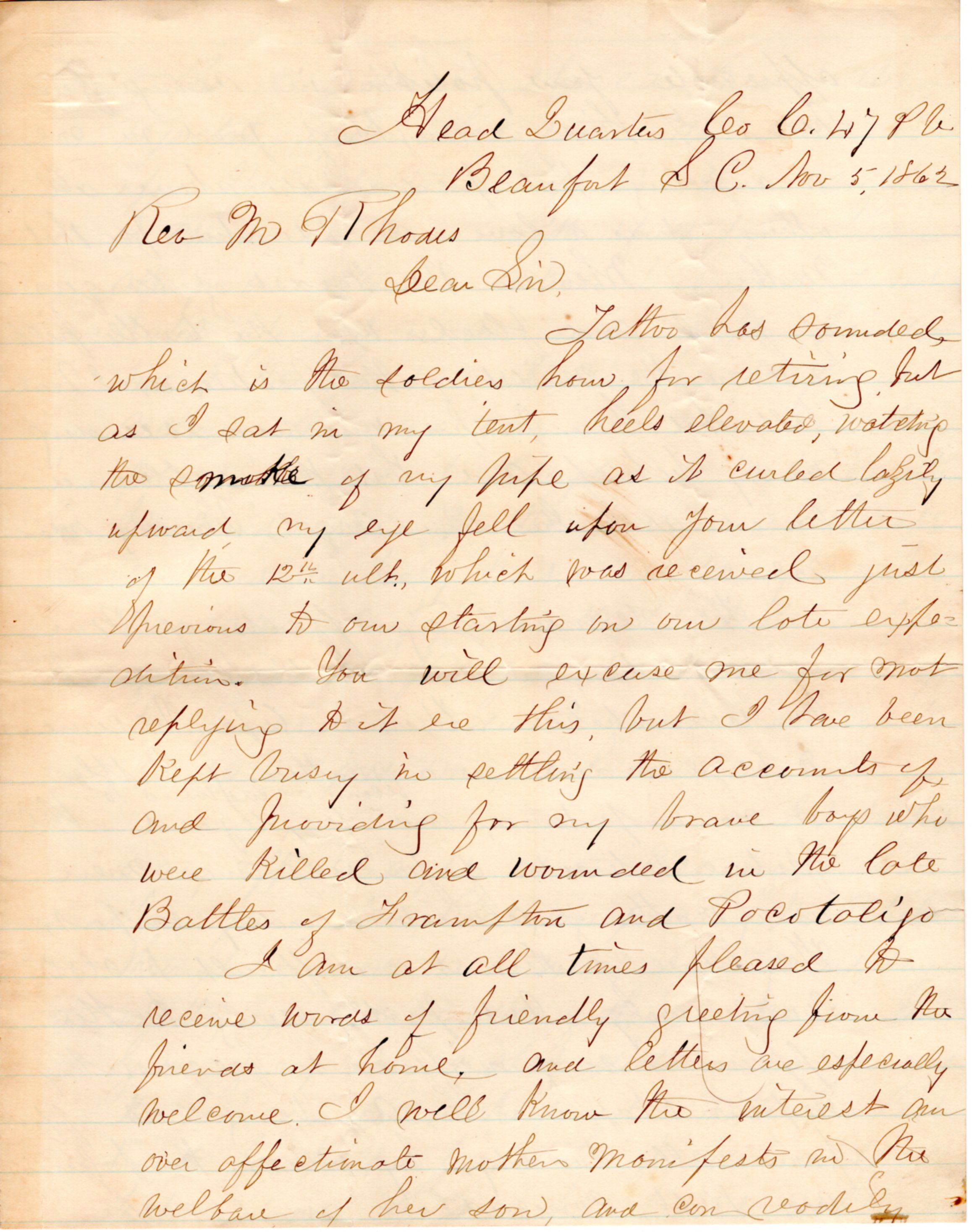 1862-11-05 J.P. Shindel Gobin from Beaufort, SC