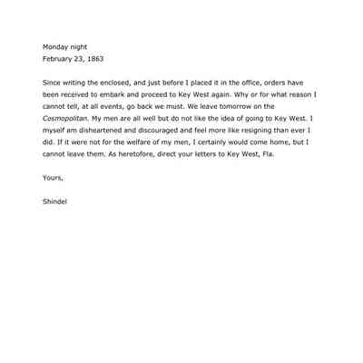 1863-02-23 J.P. Shindel Gobin from Key West, FL