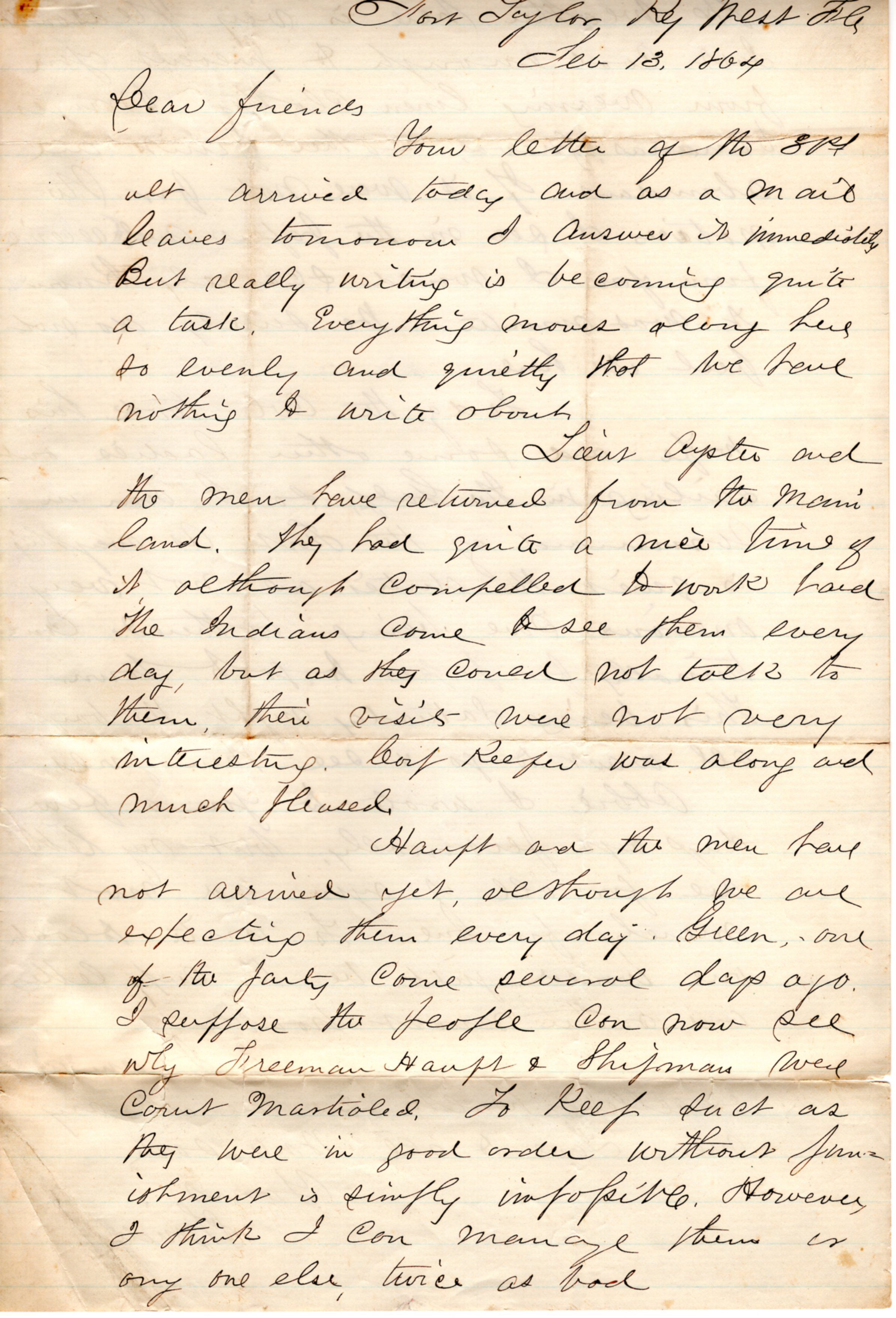 1864-02-13 J.P. Shindel Gobin from Key West, FL