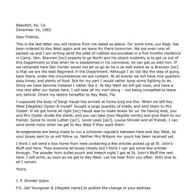 1862-12-14 J.P. Shindel Gobin from Beaufort, SC