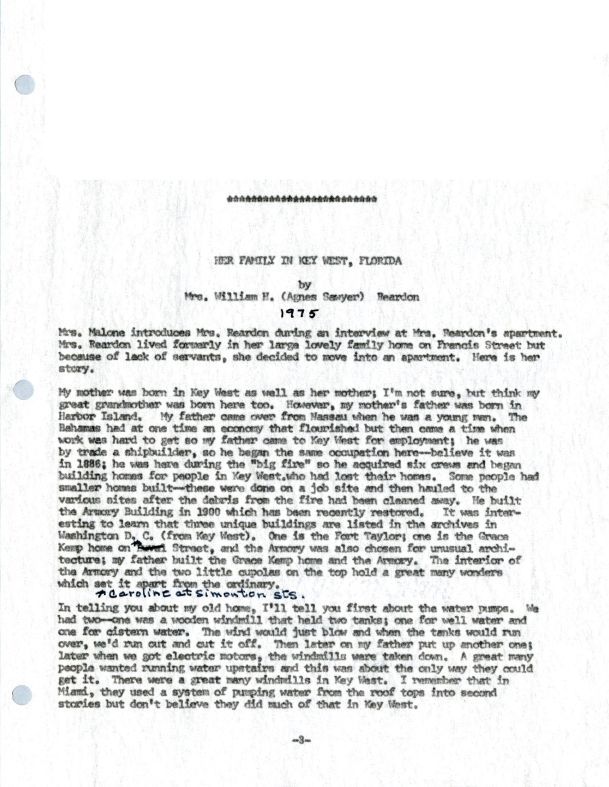Agnes Sawyer Reardon - Her Family and Growing Up in Key West (Transcript)