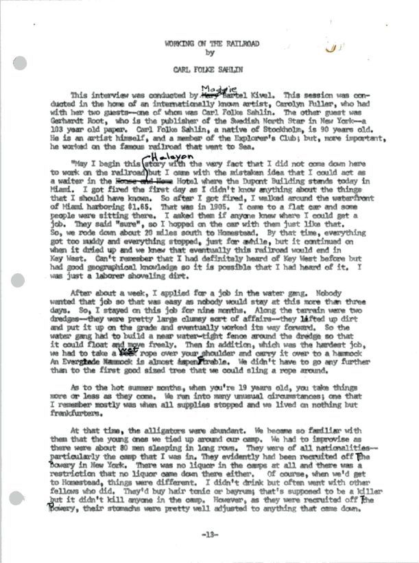 Carl Folke Sahlin - Working on the Railroad (Transcript)