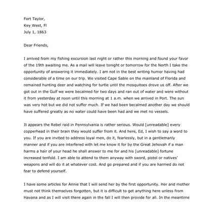 1863-07-01 J.P. Shindel Gobin from Key West, FL