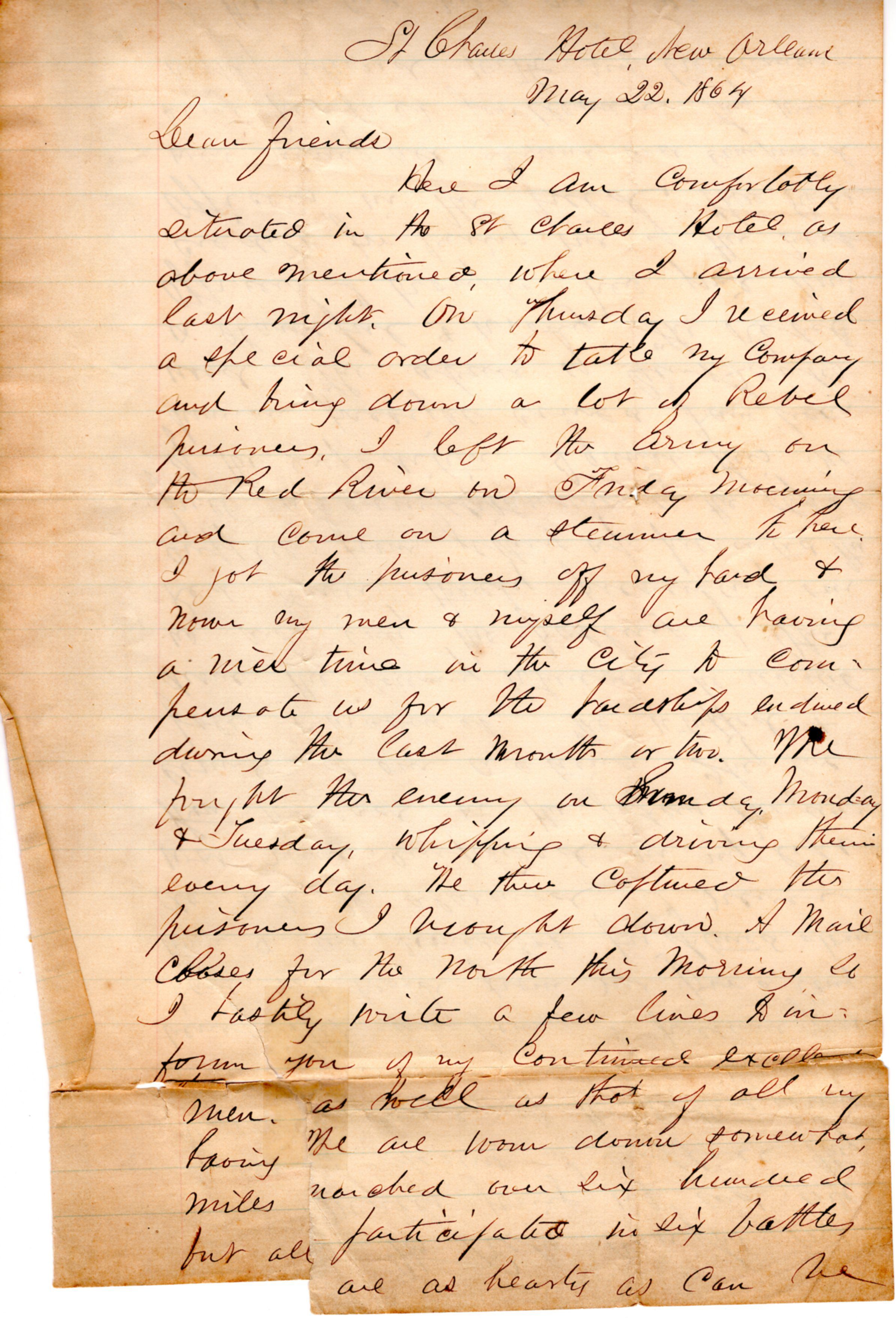 1864-05-22 J.P. Shindel Gobin from New Orleans, LA
