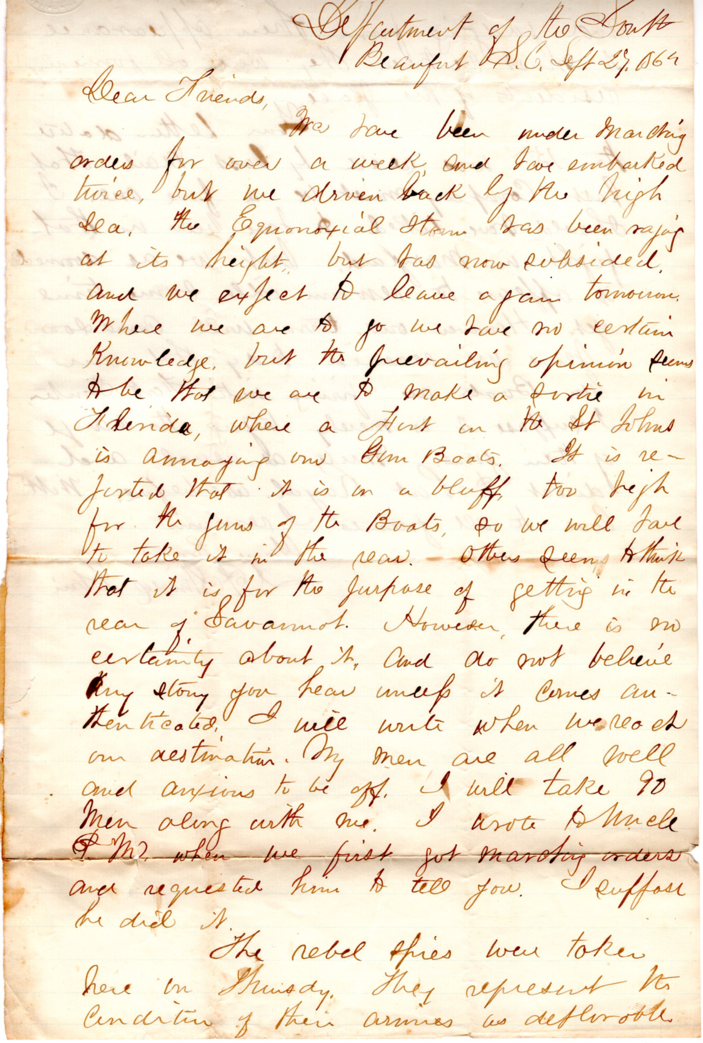 1862-09-27 J.P. Shindel Gobin from Beaufort, SC