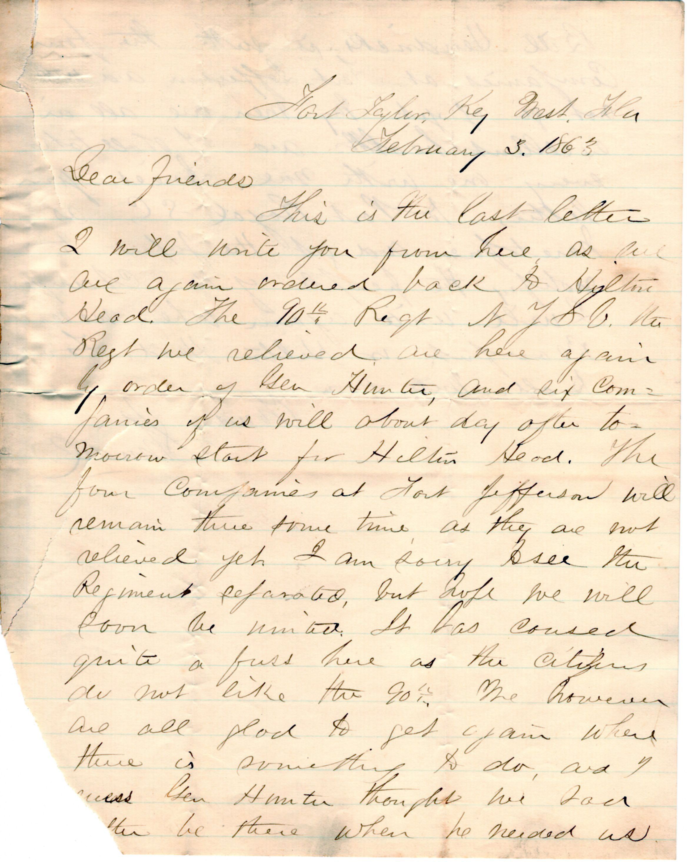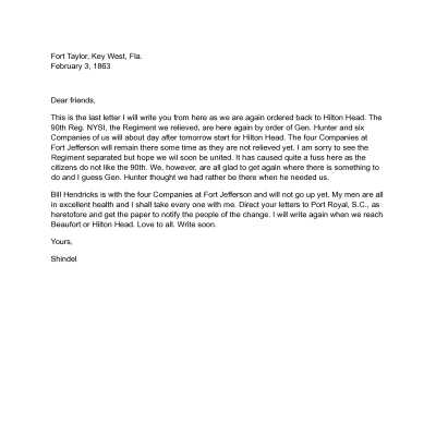 1863-02-03 J.P. Shindel Gobin from Key West, FL