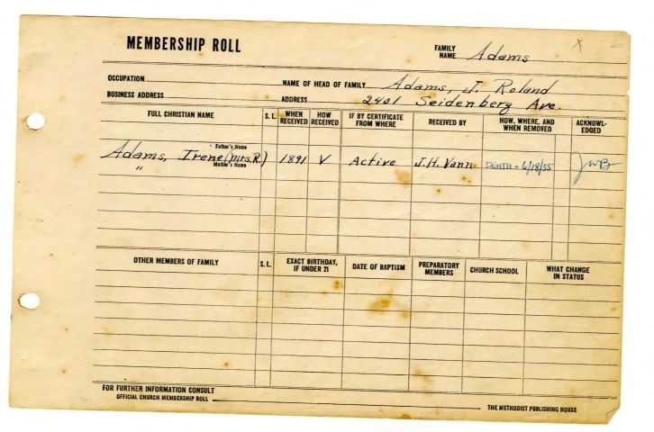 Ley Memorial Methodist Church - Membership Roll Cards