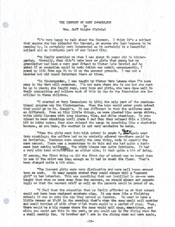 Sylvia Knight - The Convent of Mary Immaculate (Transcript)