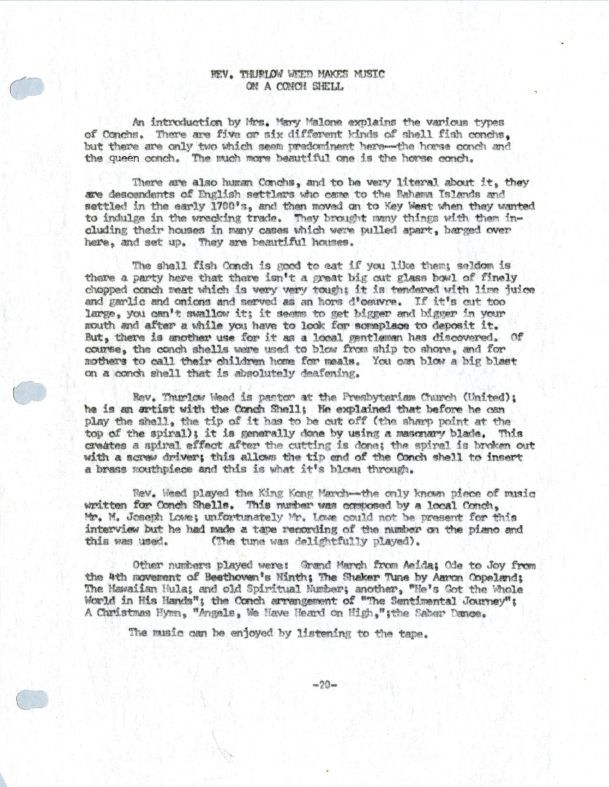 Thurlow Weed - Music on a Conch Shell (Transcript)