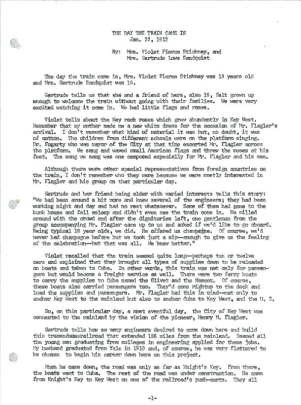 Violet Pierce Stickney & Gertrude Lowe Sandquist -The Day The Train Came In, Jan. 22, 1912 (Transcript)Collection