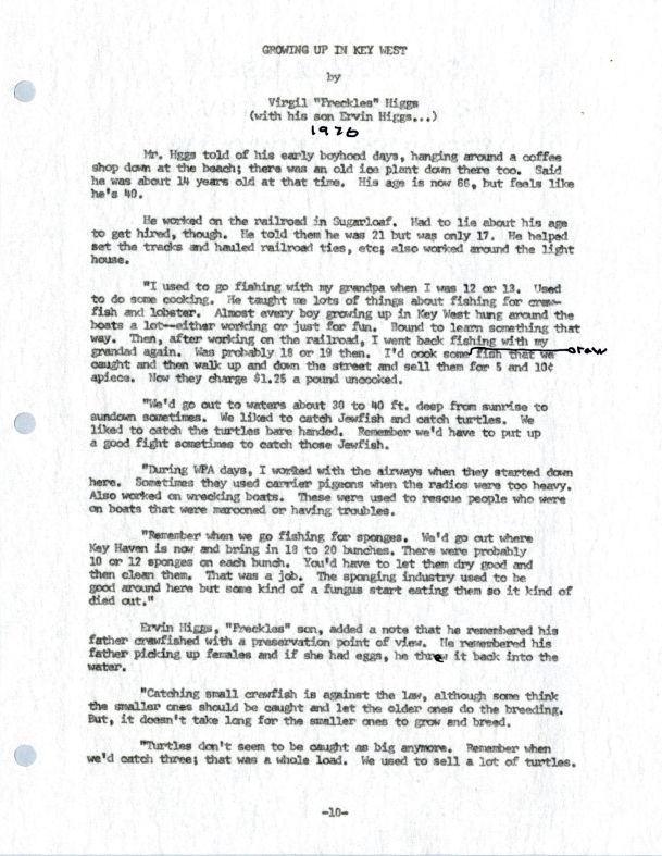 Virgil Freckles Higgs & Ervin Higgs - Growing Up in Key West (Transcript)