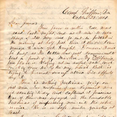 1861-10-28 J.P. Shindel Gobin from Camp Griffin, VA