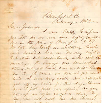 1862-11-13 J.P. Shindel Gobin from Beaufort, SC