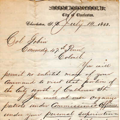 1865-02-20 J.P. Shindel Gobin from Near Charleston, SC