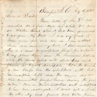 1862-07-06 J.P. Shindel Gobin from Beaufort, SC