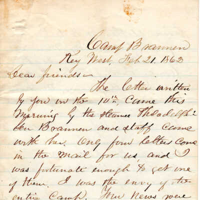 1863-02-23 J.P. Shindel Gobin from Key West, FL