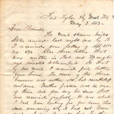 1863-05-07 J.P. Shindel Gobin from Key West, FL