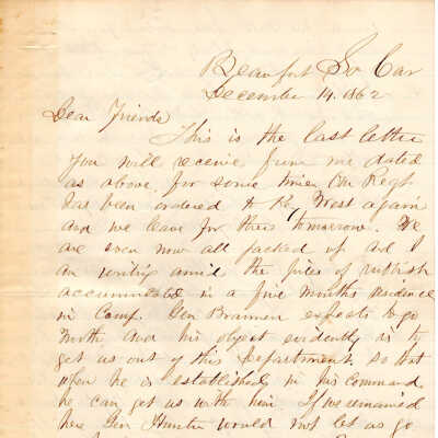 1862-12-14 J.P. Shindel Gobin from Beaufort, SC