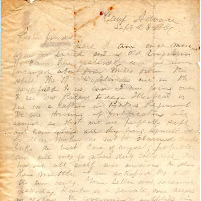 1861-09-28 J.P. Shindel Gobin from Camp Advance