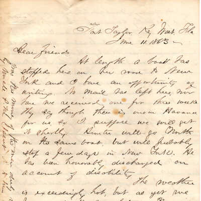 1863-02-03 J.P. Shindel Gobin from Key West, FL