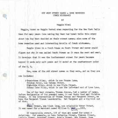 Maggie Kivel - Key West Street Names, Home Remedies, & Conch Nicknames