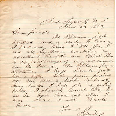 1863-06-22 J.P. Shindel Gobin from Key West, FL