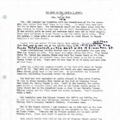 Agnes Sawyer Reardon on Her Family in Key West and Island Customs, 1975-10-15