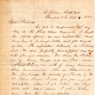 1862-10-14 J.P. Shindel Gobin from Beaufort, SC