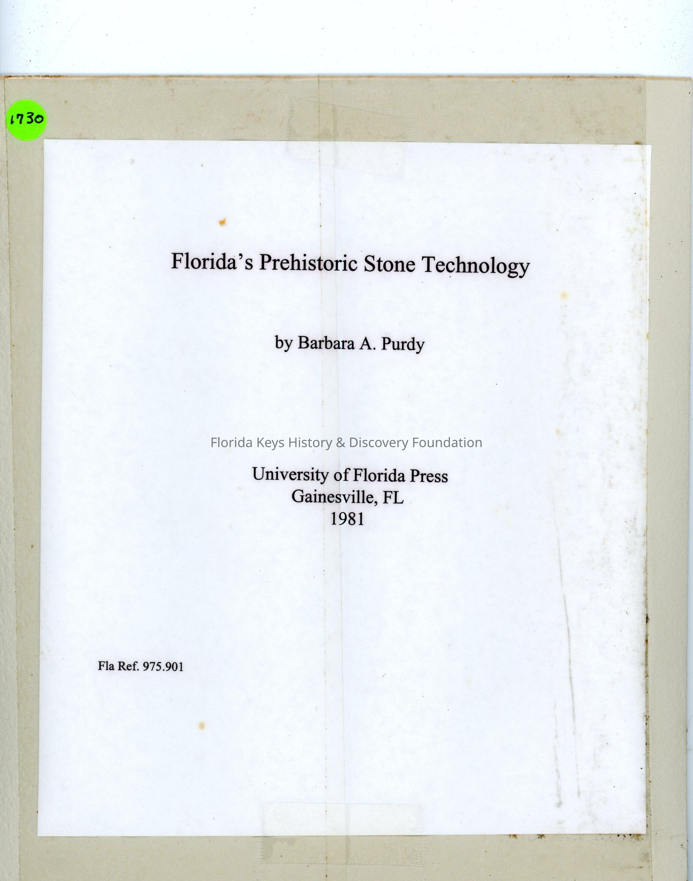 Florida's Prehistoric Stone TechnologyEntry/Object ID