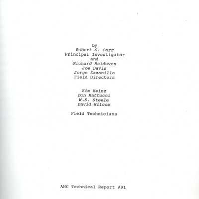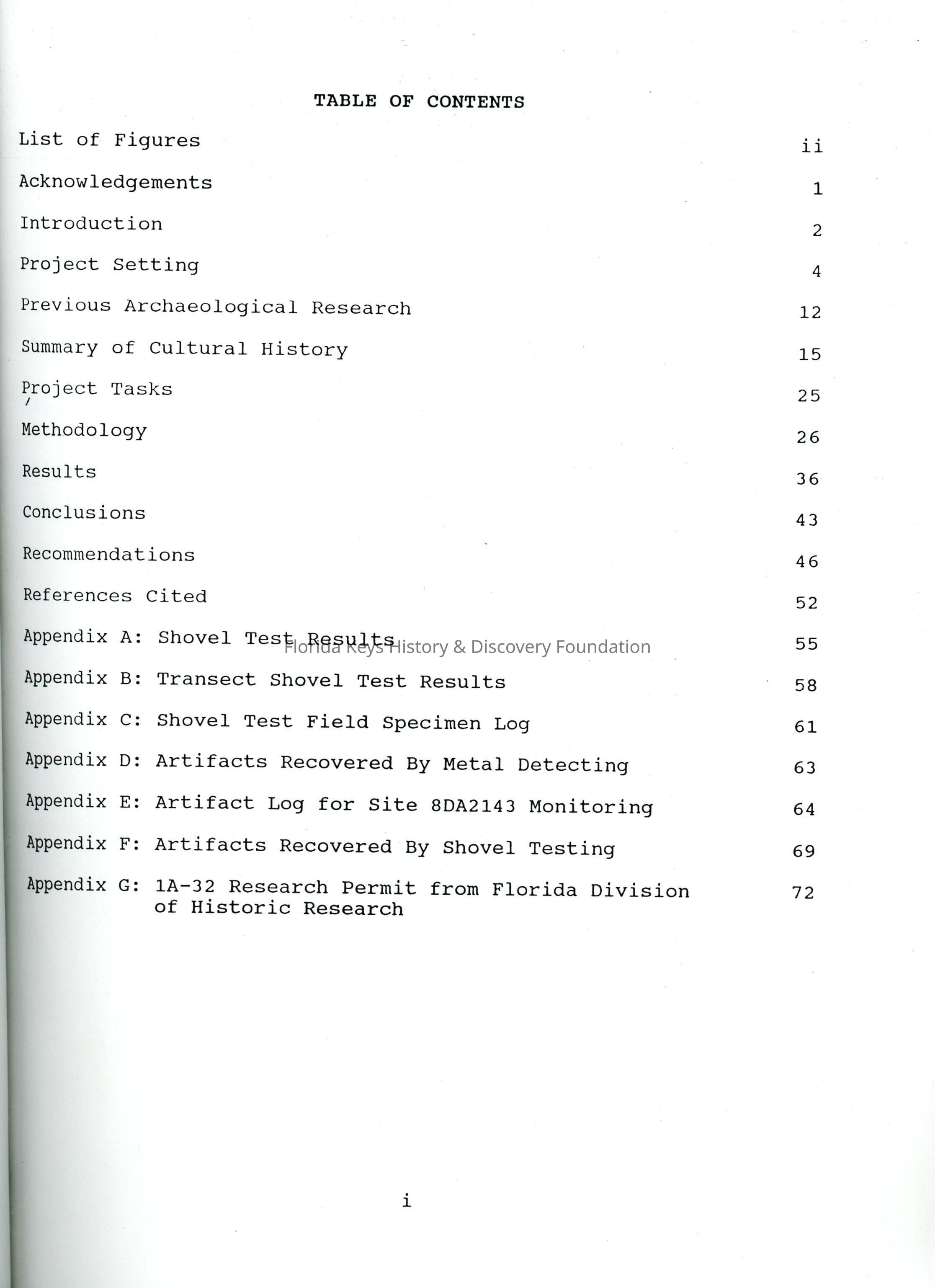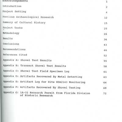 Conducted by Archaeological and Historical Conservancy and Metro-Dade Historic Preservation Division for State of Florida Department of Natural Resources P.O. #: S 3700 440461