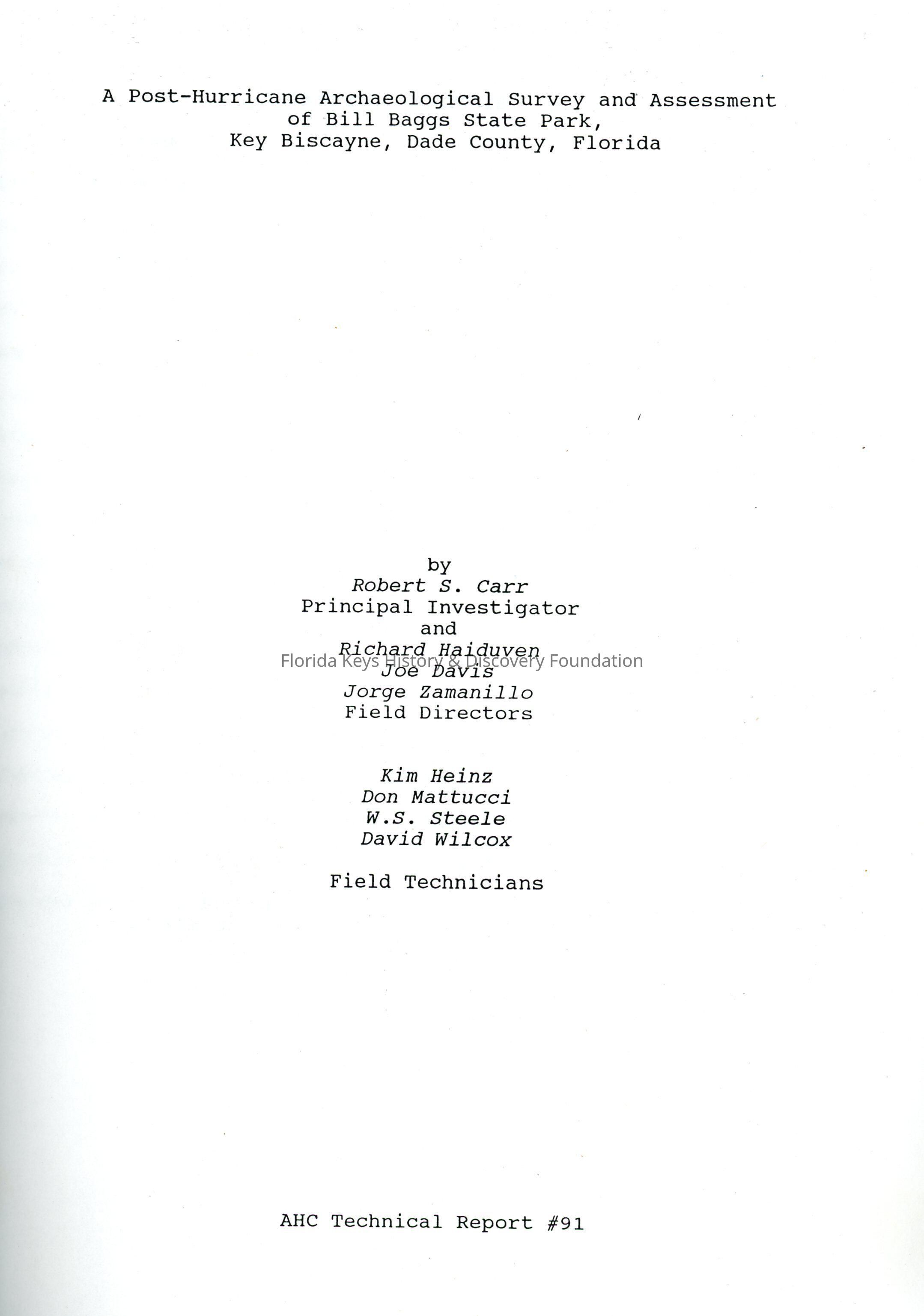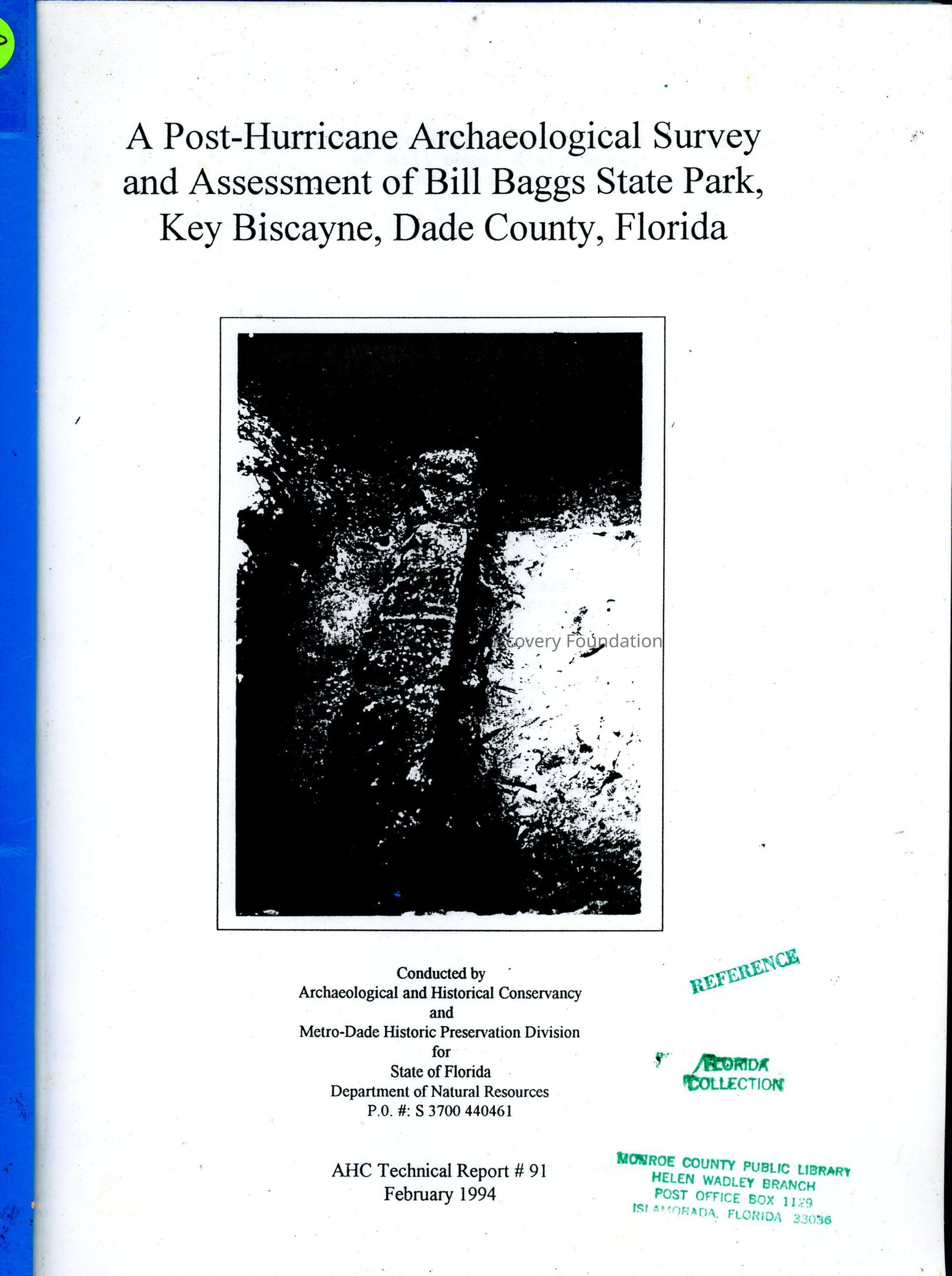 A Post-Hurricane Archaeological Survey and Assessment of Bill Baggs State Park, Key Biscayne, Dade County, FloridaEntry/Object ID