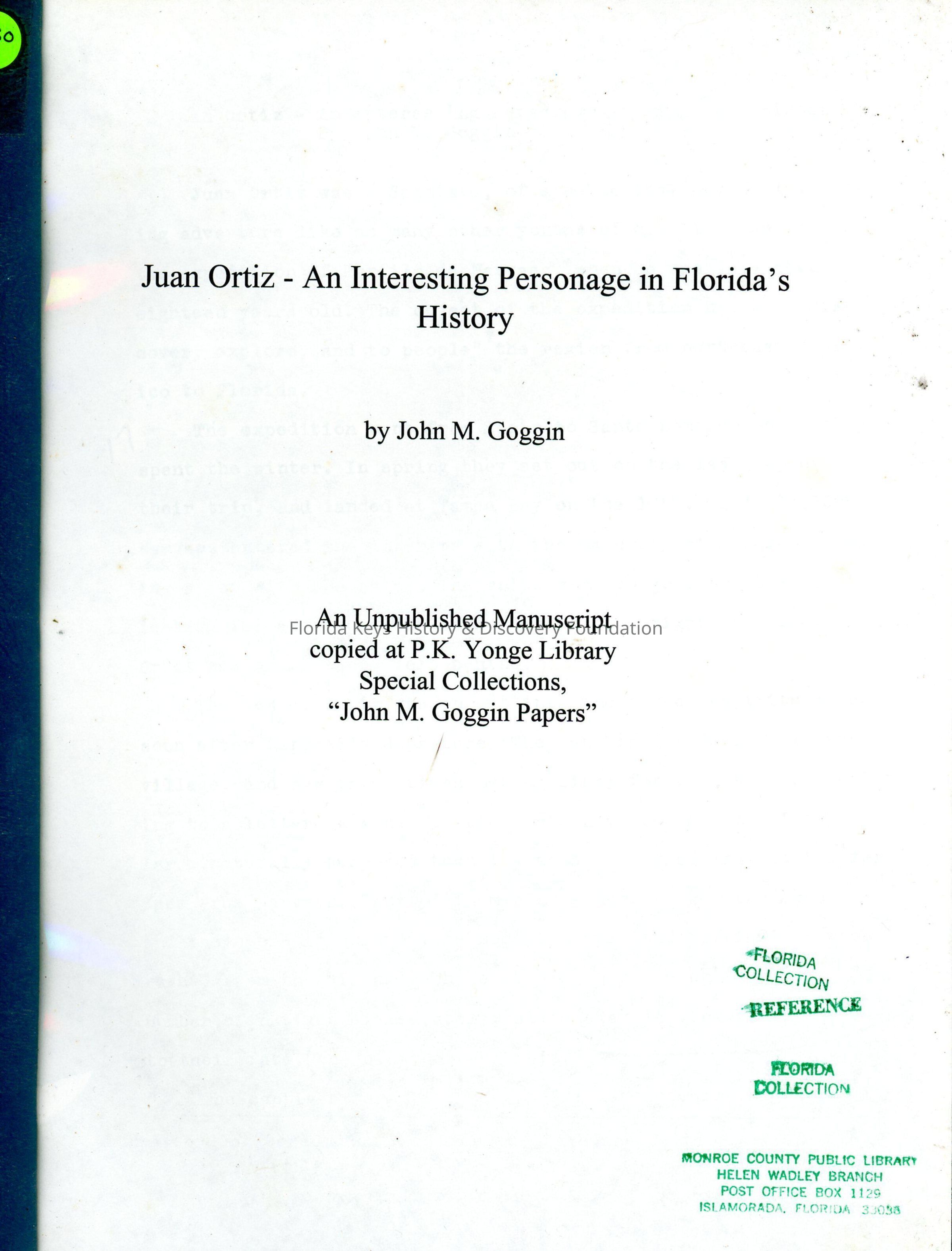 Juan Ortiz - An Interesting Personage in Florida's HistoryEntry/Object ID