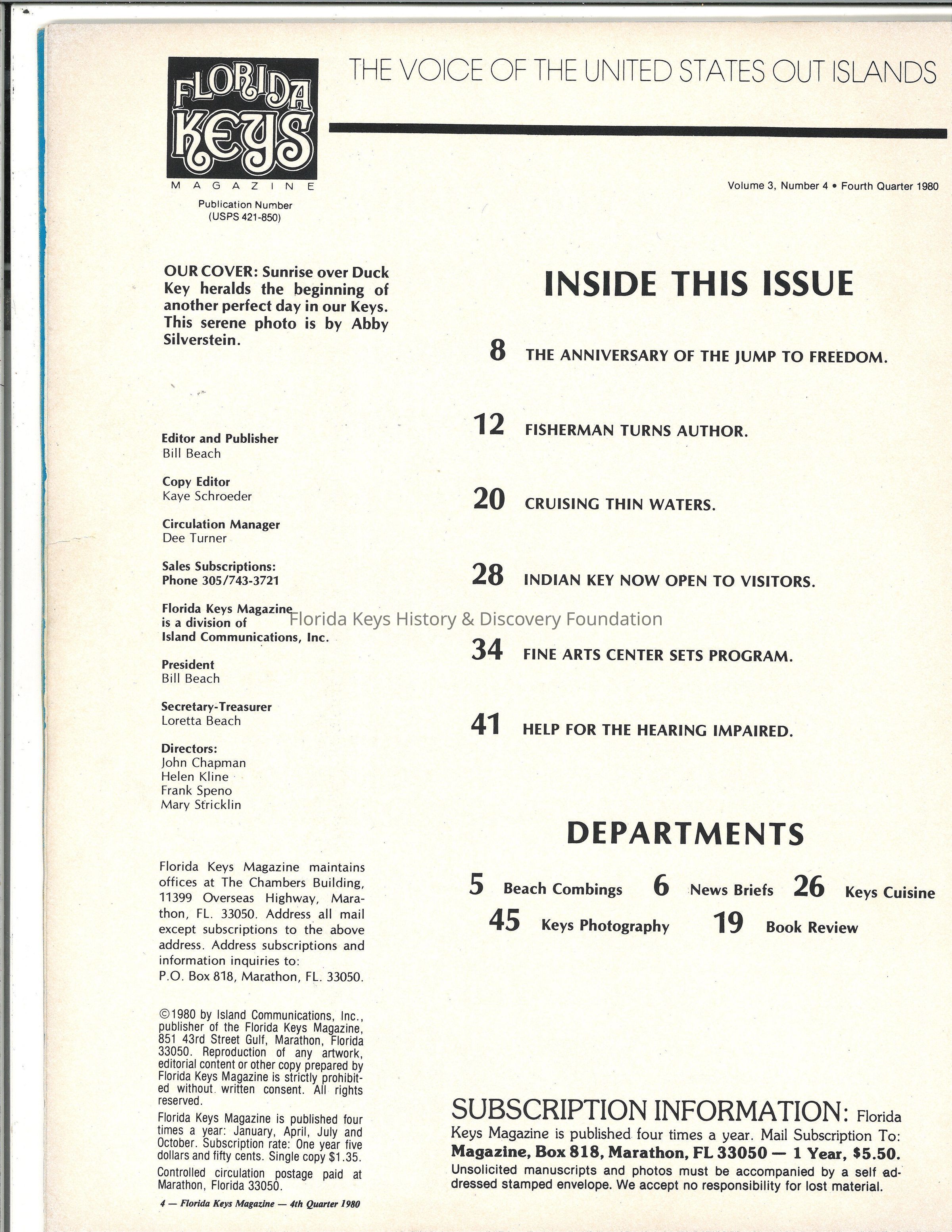 Florida Keys Magazine, Fourth Quarter, 1980Entry/Object ID