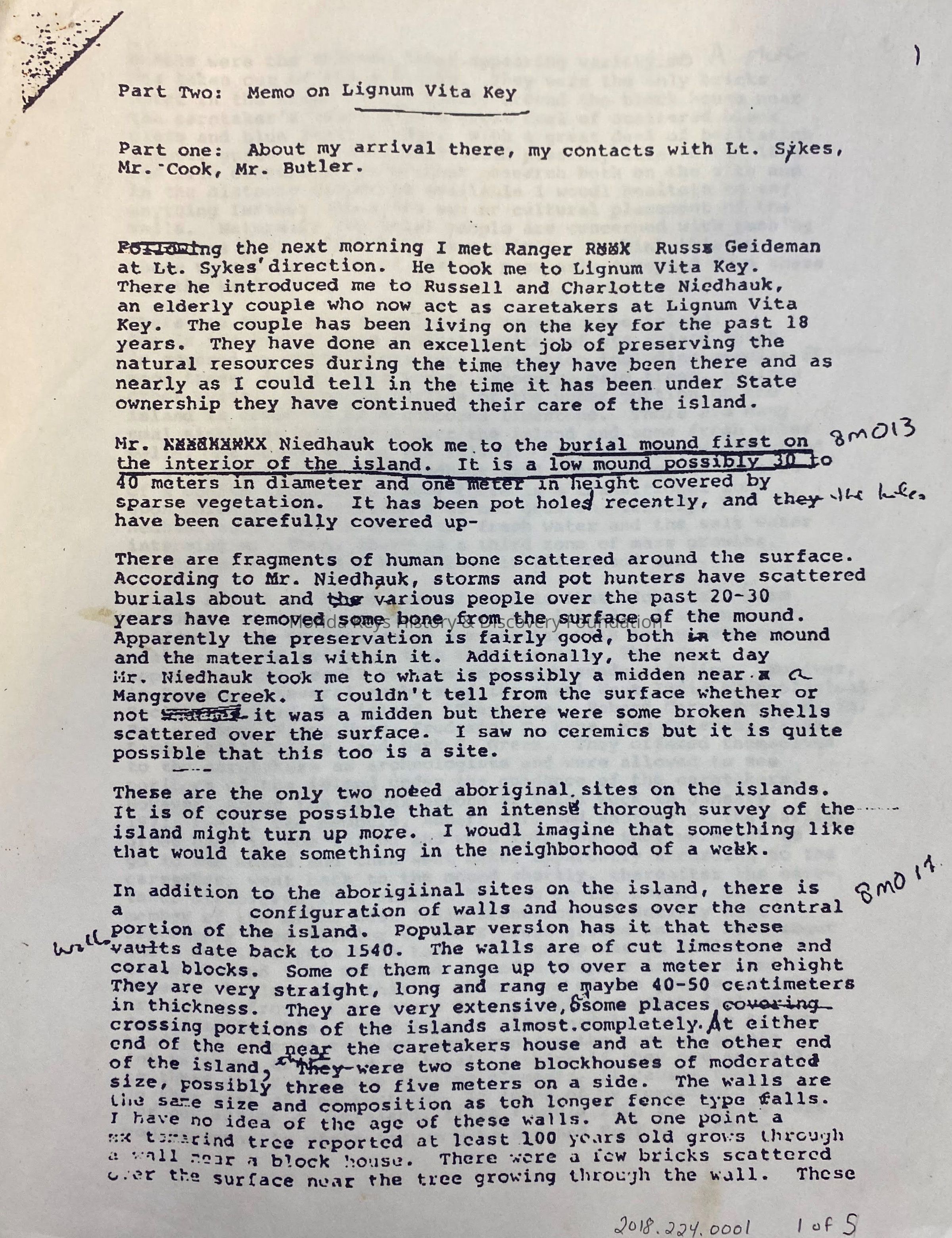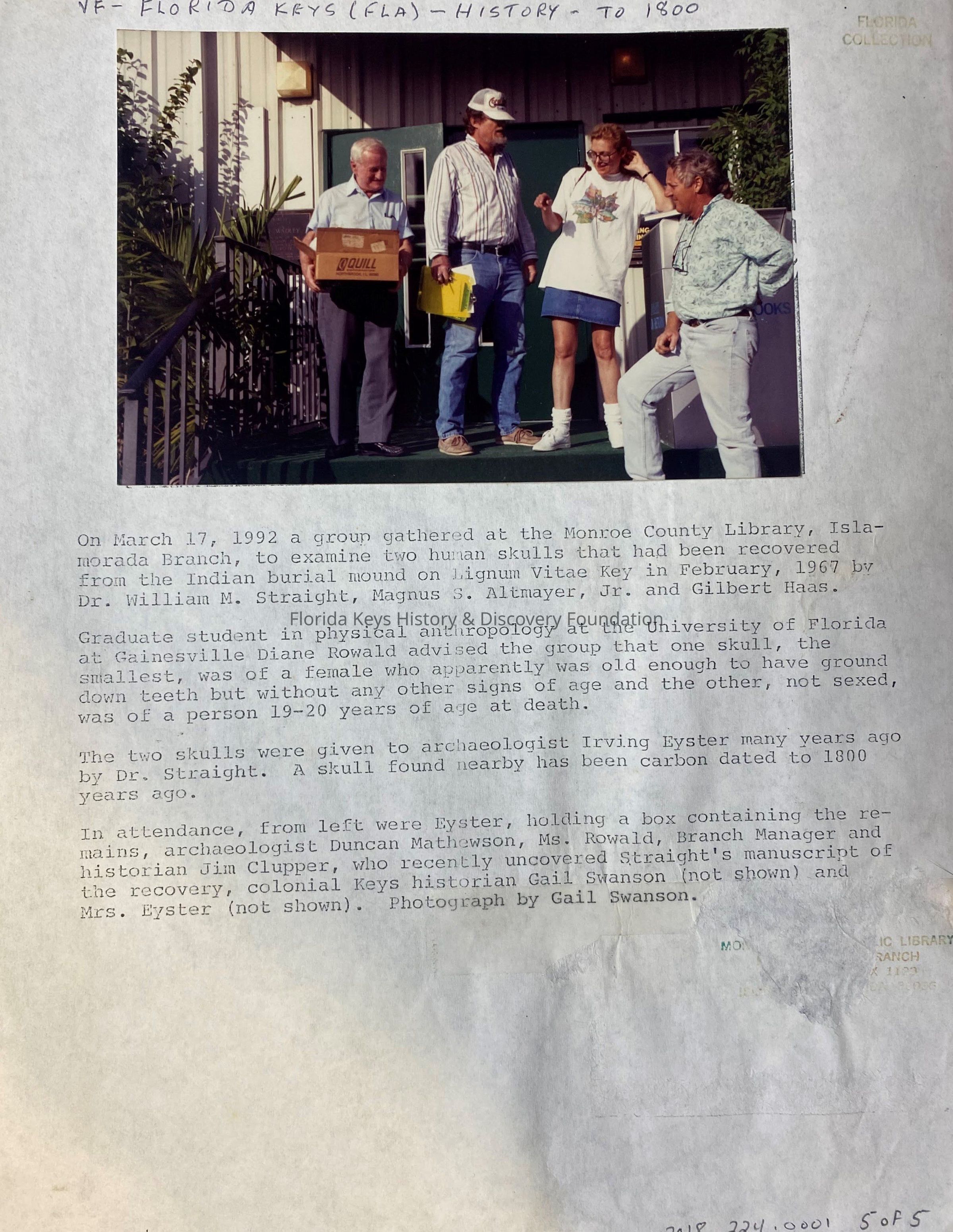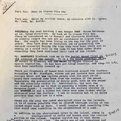 Assorted photographs, site files, and correspondence on Lignumvitae Key Burial Ground compiled by Jim ClupperCollection