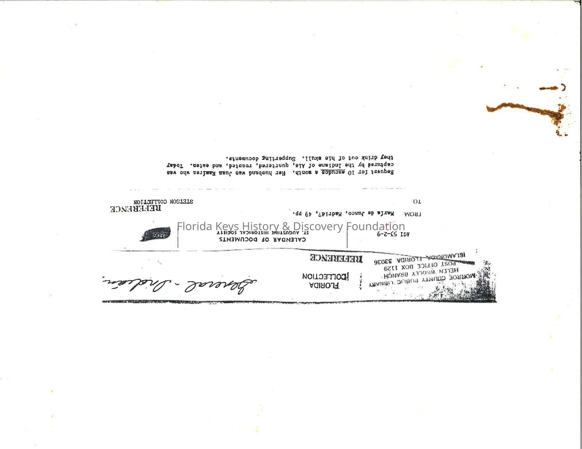 account from Maria de Junco, Madrid husband eaten by Indians St. Augustine Historical Society Stetson CollectionContext