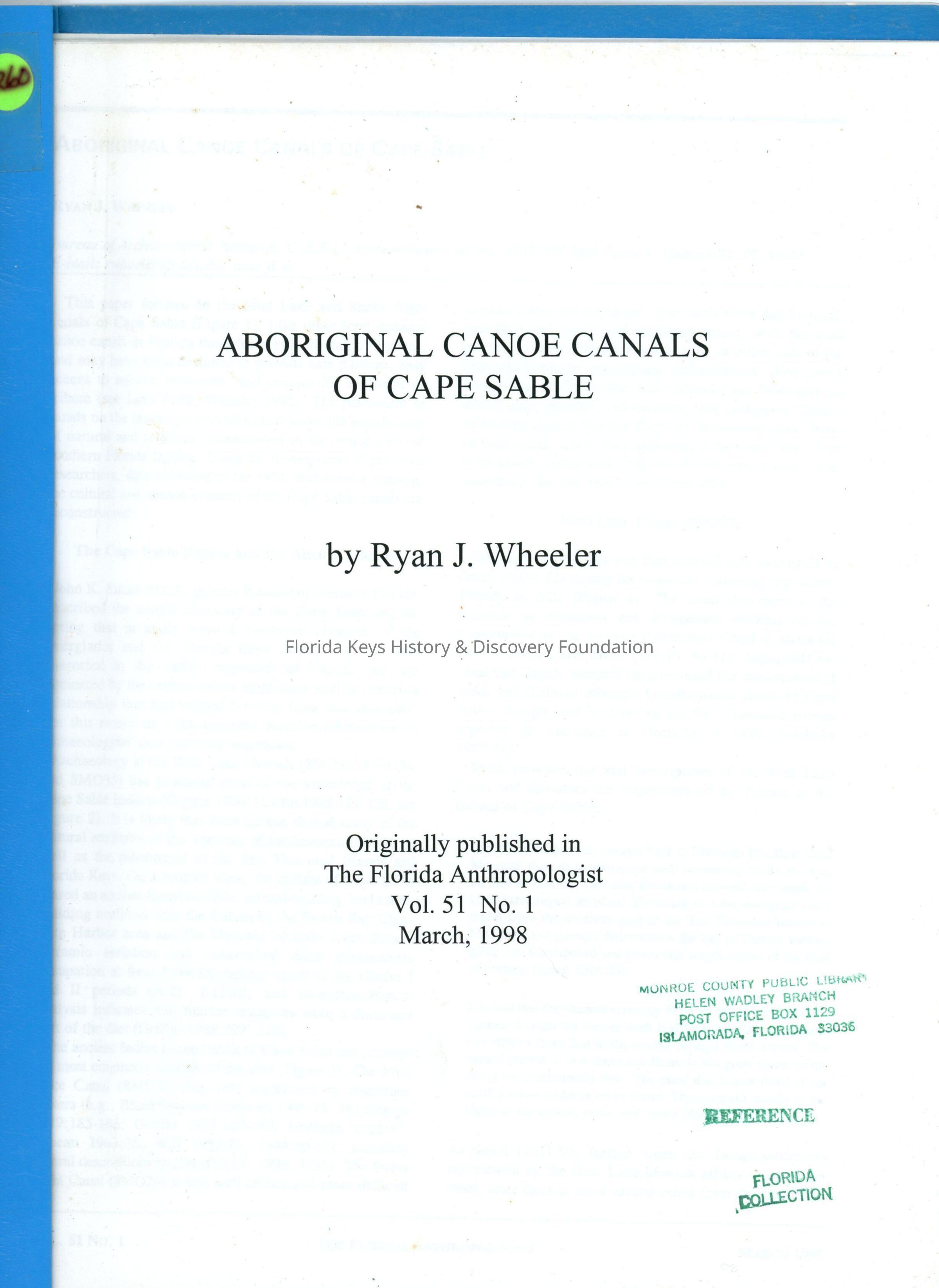 Aboriginal Canoe Canals of Cape SableEntry/Object ID