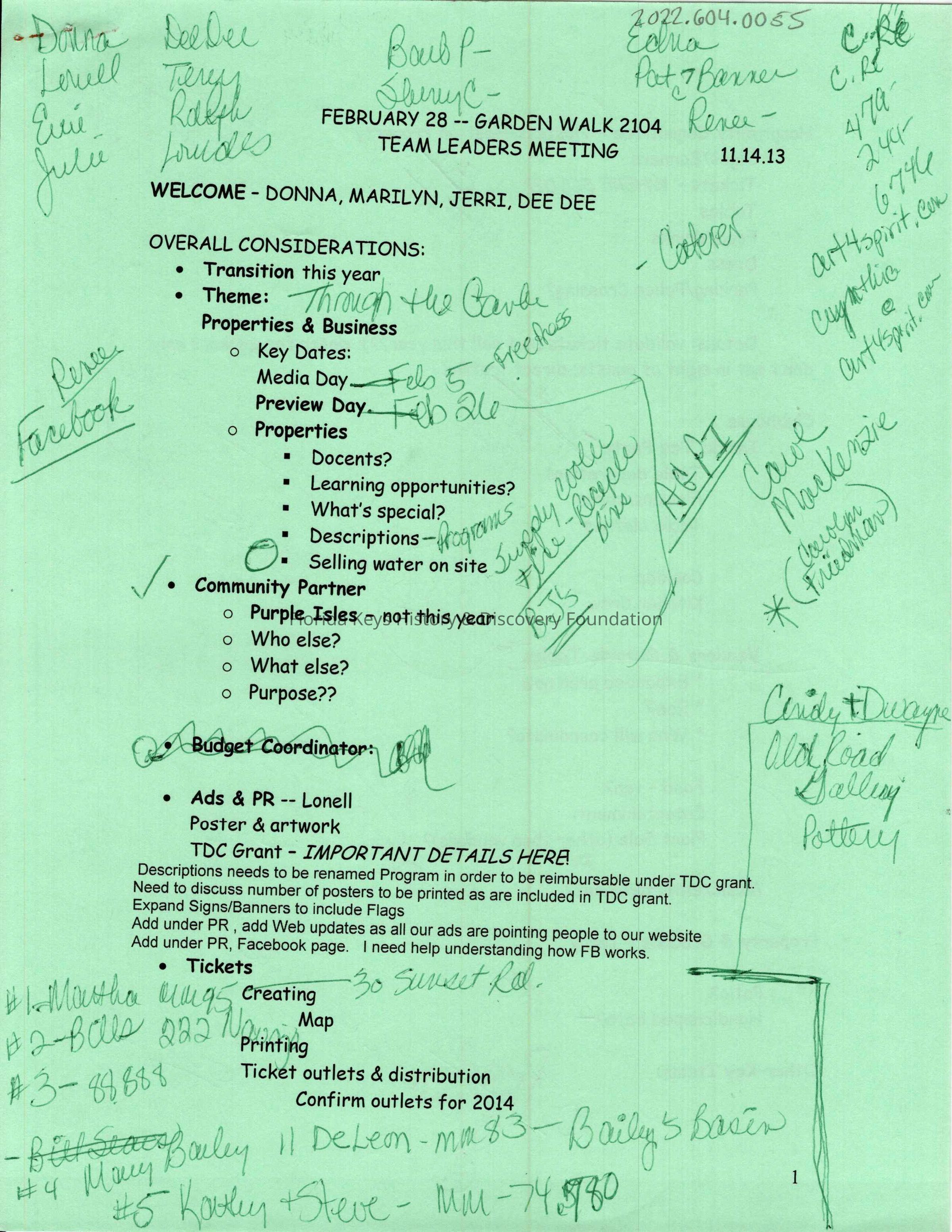 Garden Walk 2014 Team Leaders Meeting NotesEntry/Object ID