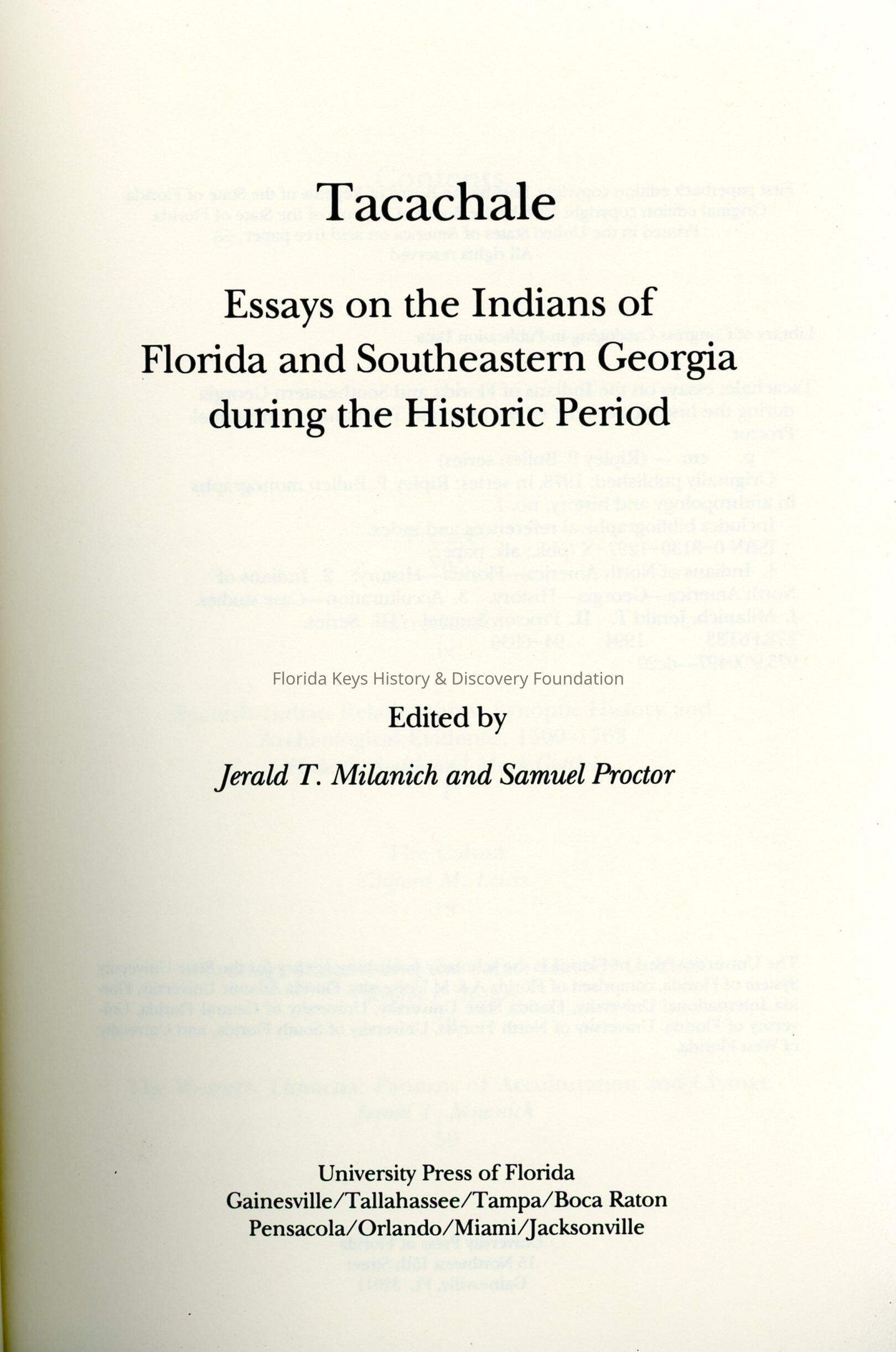 Tacachale: Essays on the Indians of Florida and Southeastern Georgia during the Historic PeriodEntry/Object ID