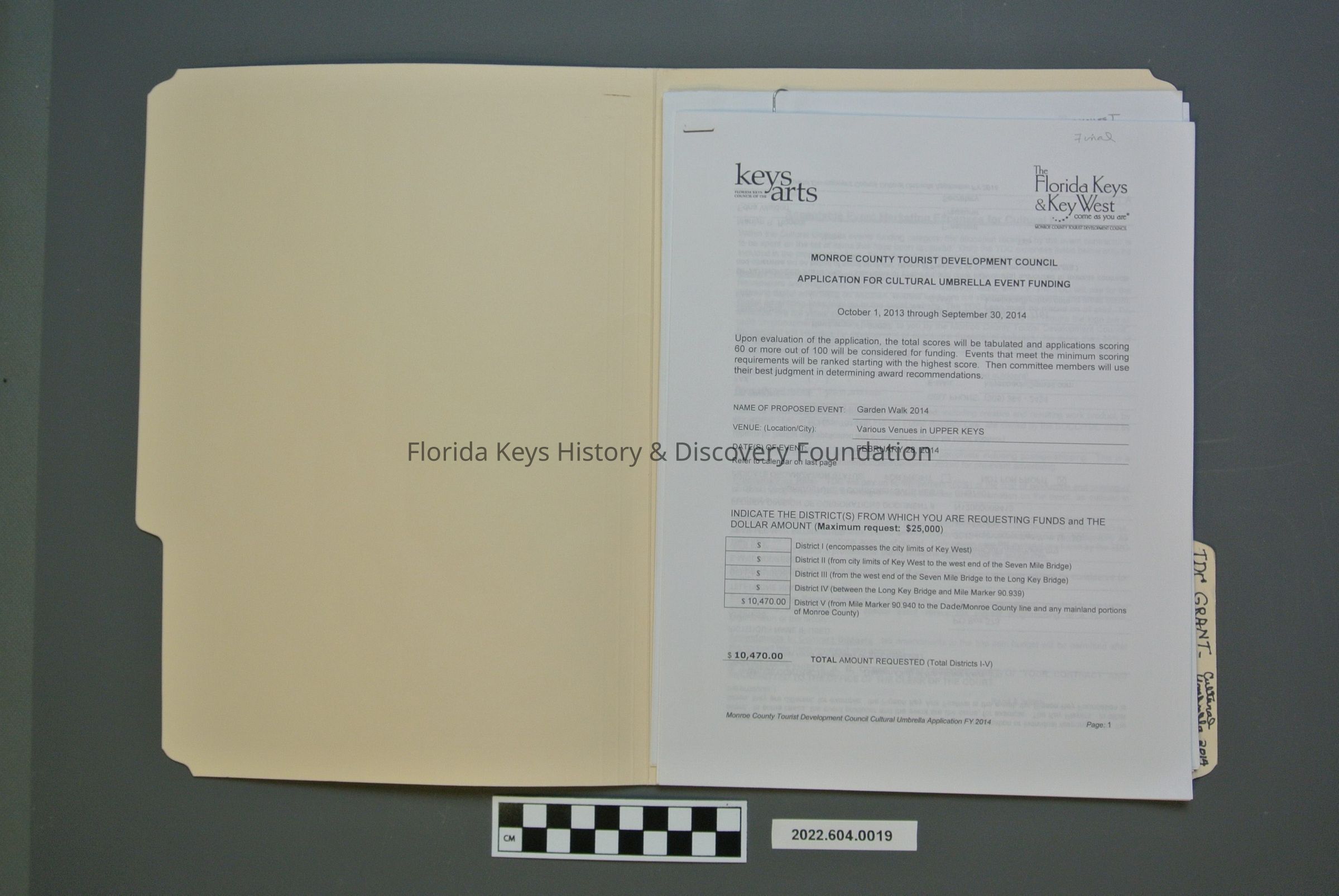 Collection of papers from Monroe County Cultural Events. Includes Application for Cultural Umbrella Event Funding and Acceptable Event Marketing Expenses for Cultural Events printouts.Collection