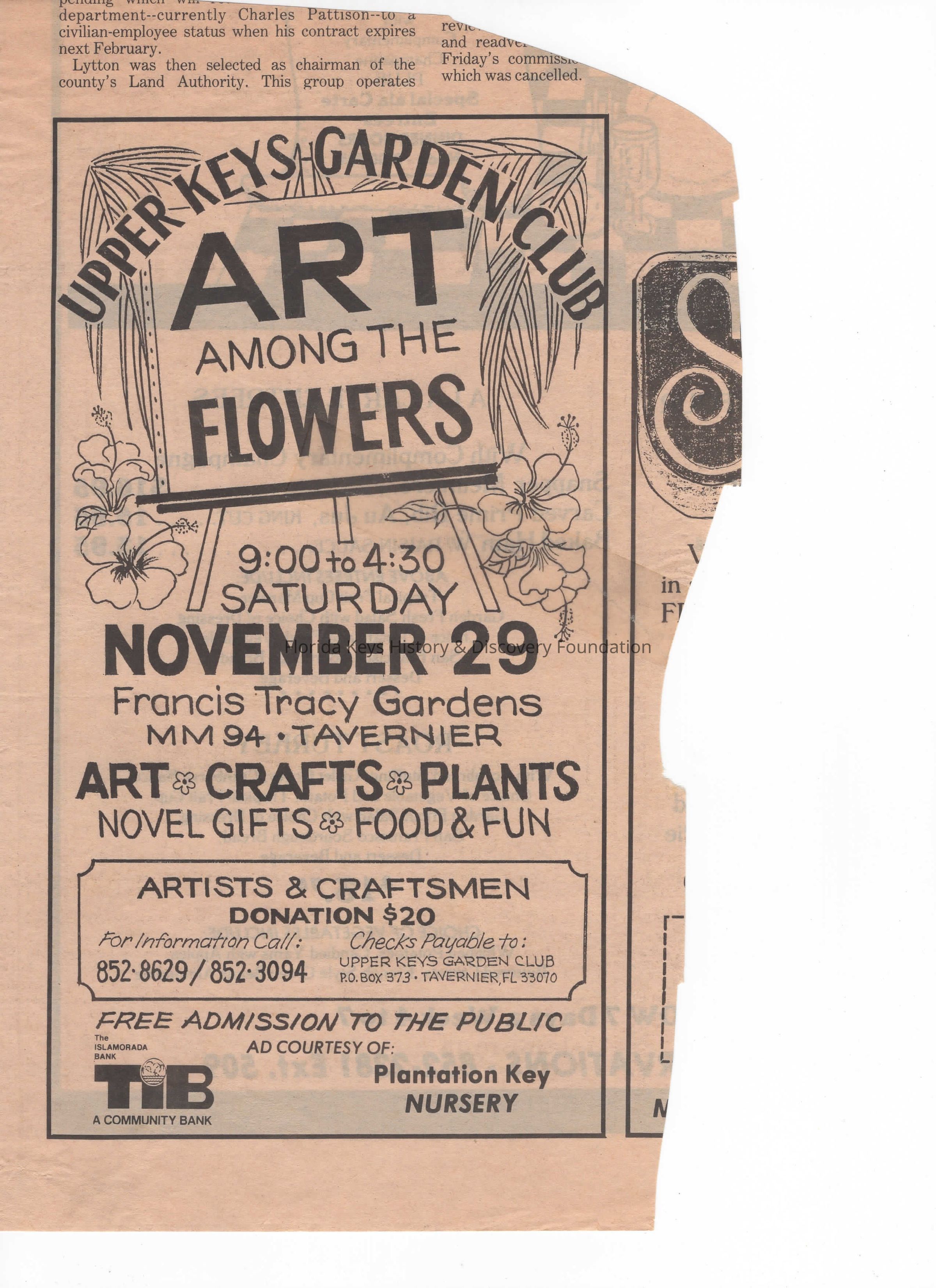 1980s, 1986, Art Among Flowers, Art Show, Arts and Crafts, Francis Tracy Garden Center, GCUK, DonationContext