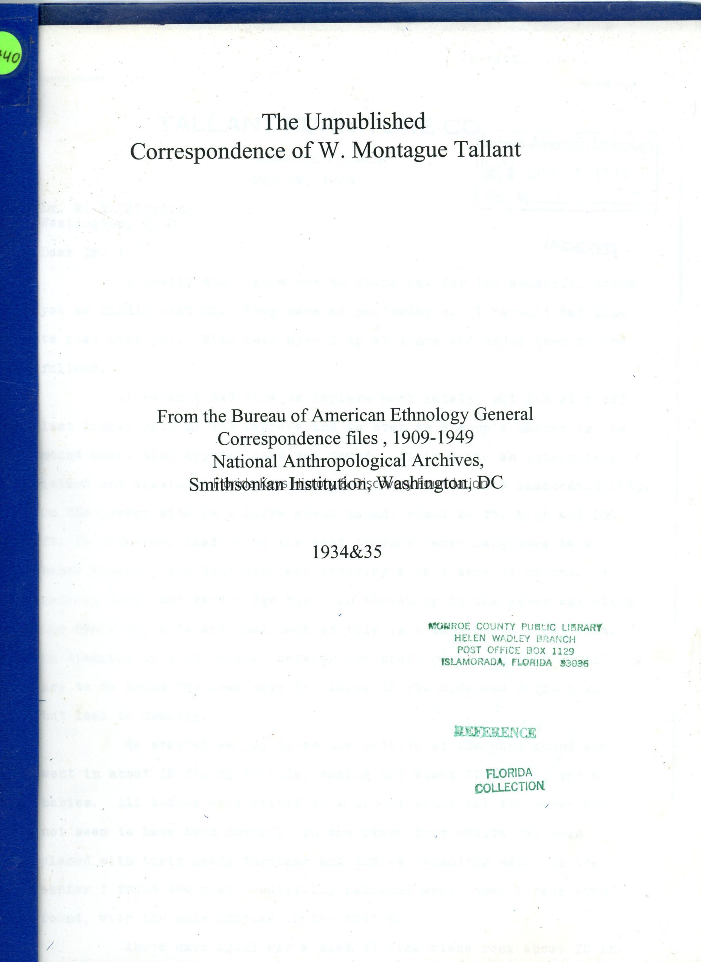The Unpublished Correspondence of W. Montague TallantEntry/Object ID