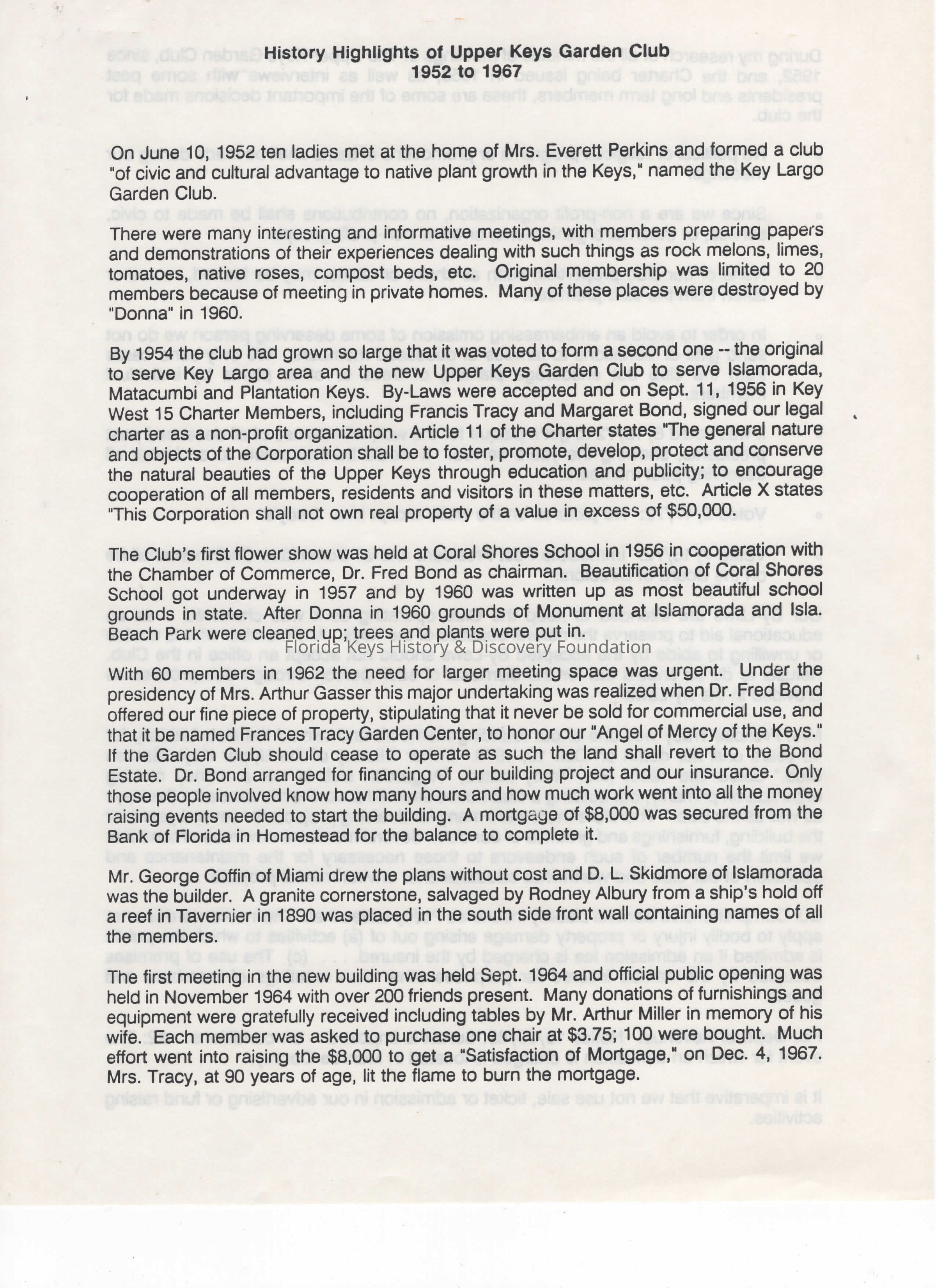 History, GCUK, 1950s, 1952, 1960s, 1967, 1980s, 1989, Tavernier, Key Largo Garden Club, Key Largo, Francis Tracy Garden Center, Islamorada, CommitteeContext
