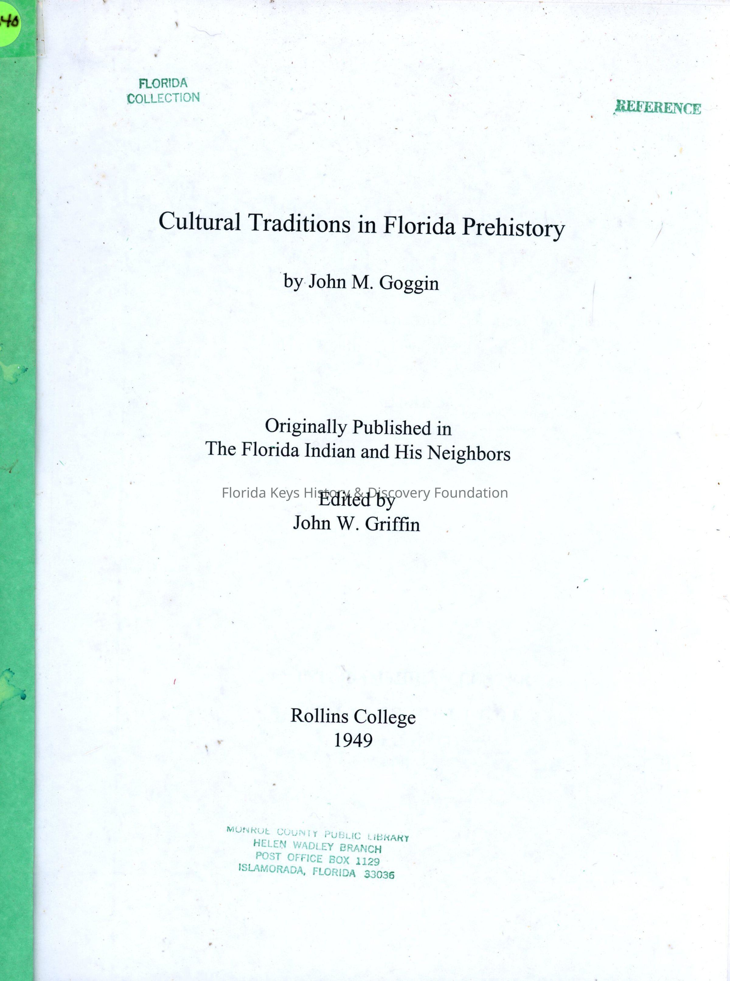 Cultural Traditions in Florida PrehistoryEntry/Object ID