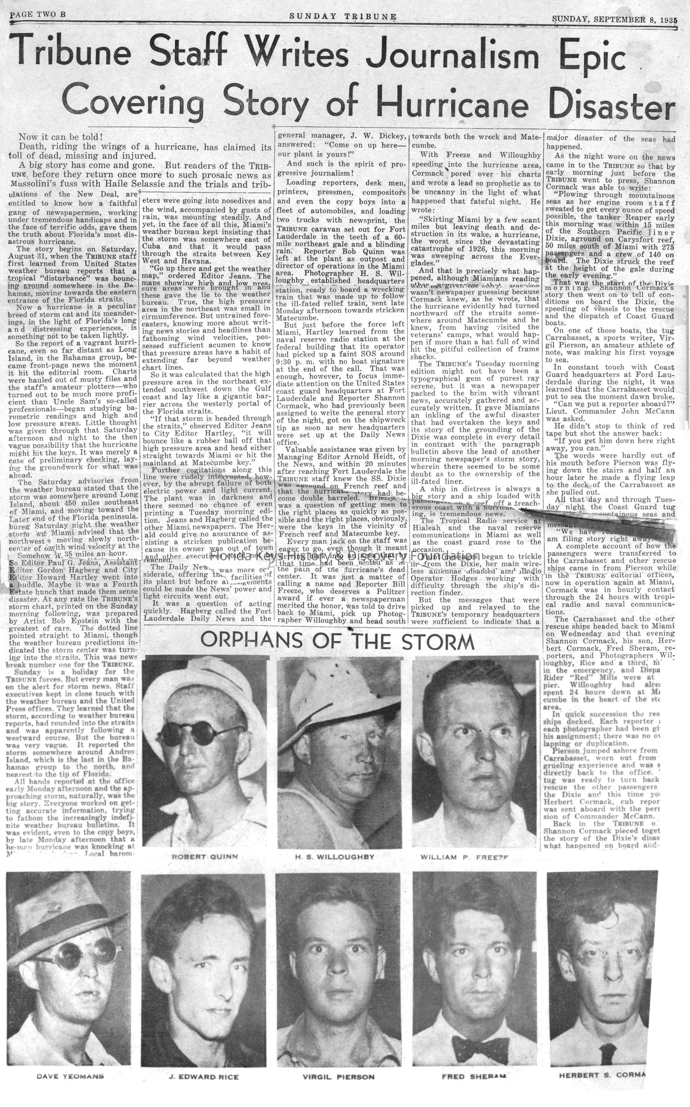 "Tribune Staff Writes Journalism Epic Covering Story of Hurricane Disaster"Collection