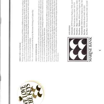 13 month calendar published by Marine Bank with photos and comment by Jerry and Mary Lou WilkinsonCataloged By