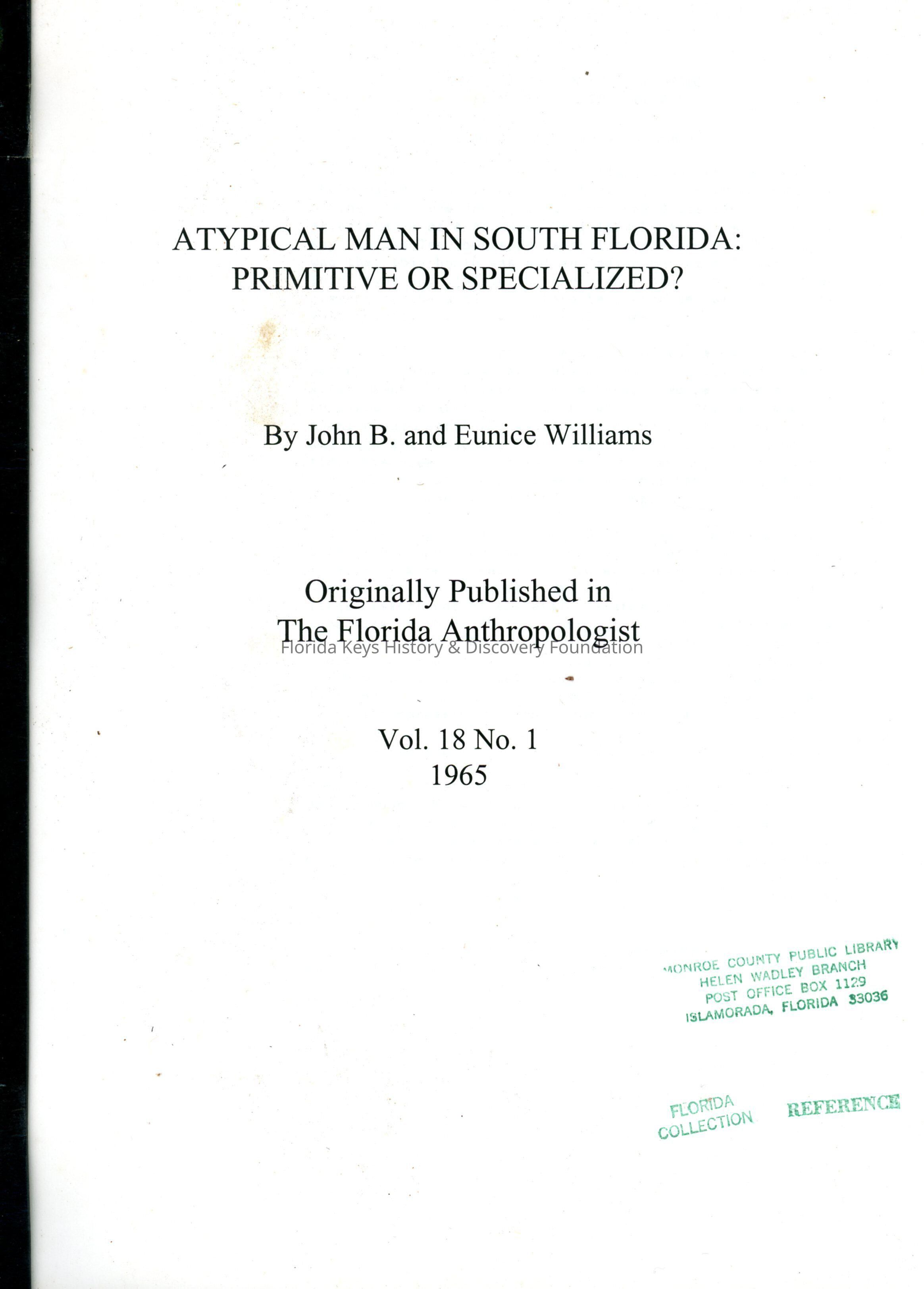 Atypical Man in South Florida: Primitive or Specialized?Entry/Object ID