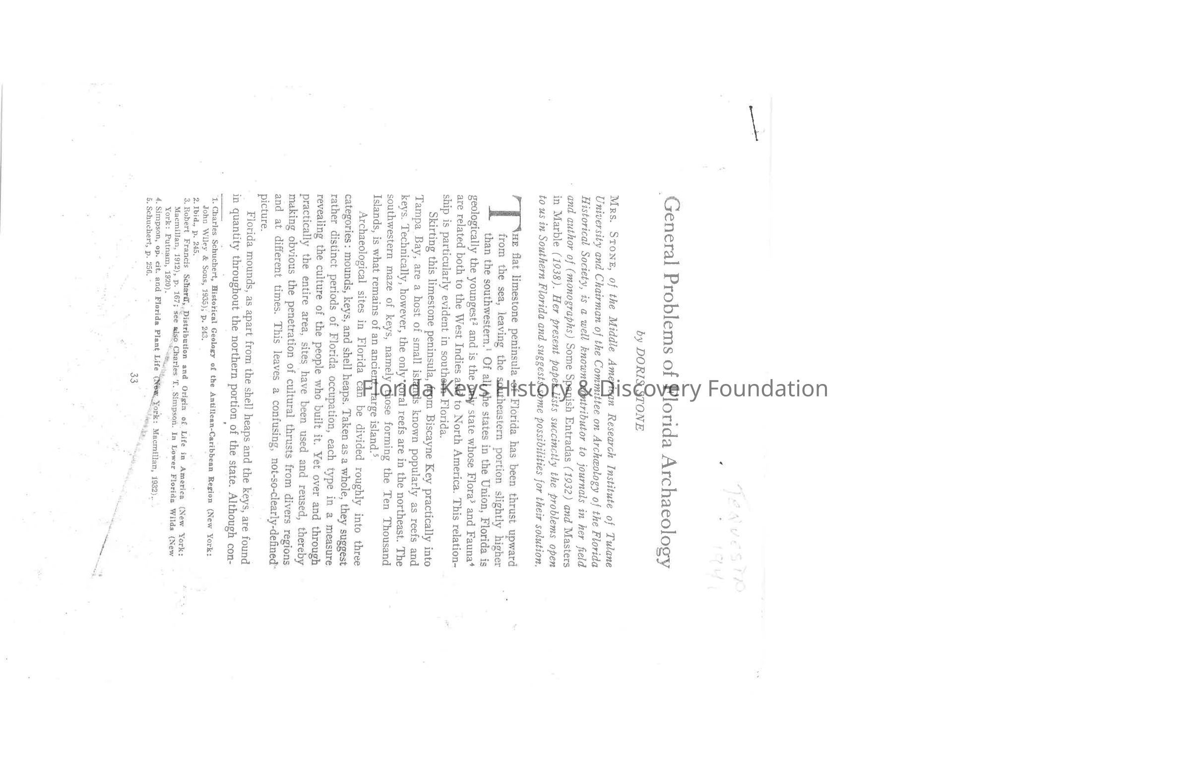 General Problems of Florida Archaeology by Doris StoneEntry/Object ID