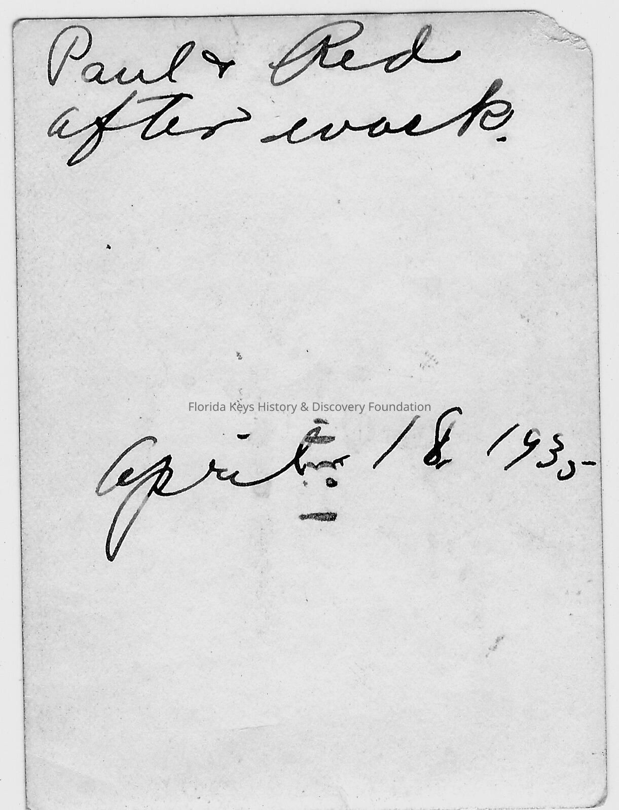 back of photo with caption "Paul and Red after ___" "April 18, 1935"Collection